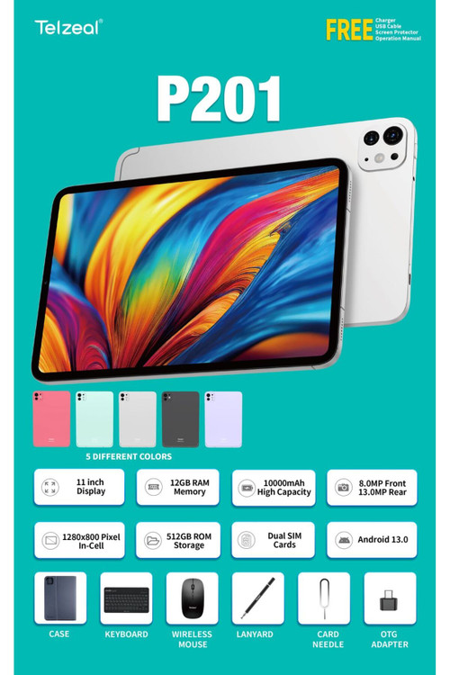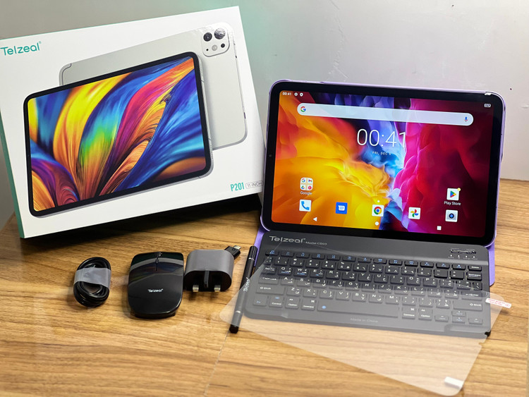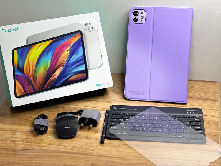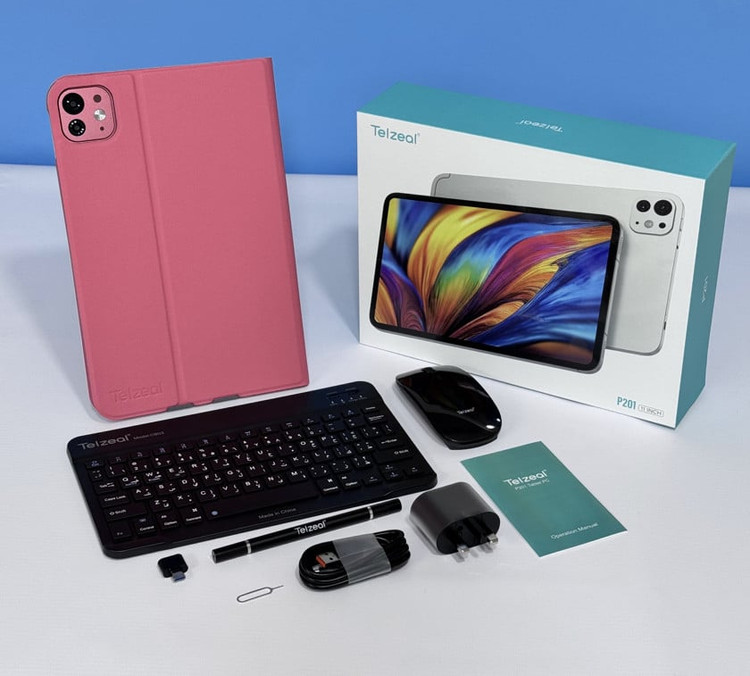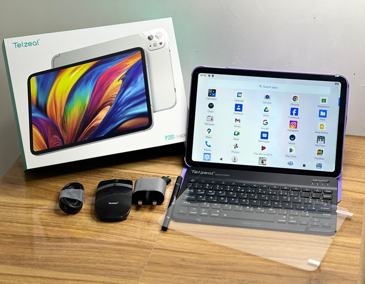 تبلت Telzeal مدل p201 | رم ۱۲گیگ | حافظه ۳۲ گیگ قابل افزایش تا ۵۱۲ گیگ | همراه ماوس و کیبورد و قلم و کیف محافظ و شارژر